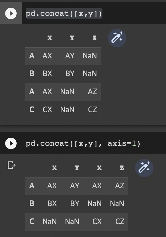 y = pd.DataFrame([['AX','AZ'],['CX','CZ']], index = ['A','C'], columns = ['X','Z'])