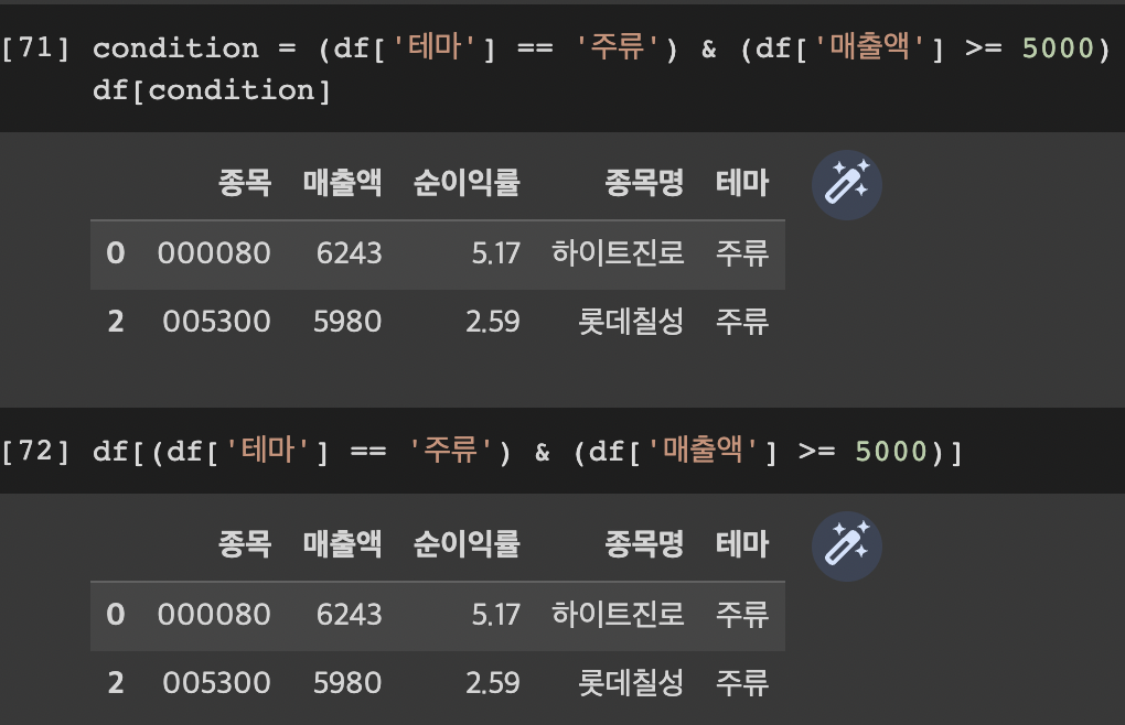 이에 대해 True값을 갖는 df를 반환 시키려면 이와 같이 사용하면 된다. (한 가지 방법만 있는 것이 아니다.)