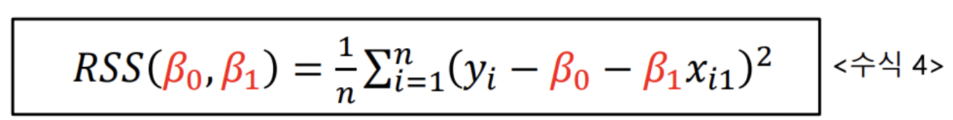 해당 RSS (오차 값)를 최소화 하는 Beta(hat) 값들을 찾게 되고 이는 추정모형의 Beta(hat)이 된다.